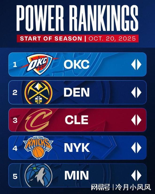 NBA官网发布首期实力榜:雷霆力压掘金高居第一,湖人第十